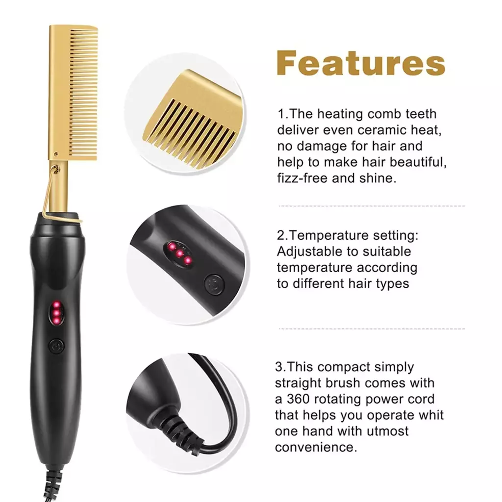 • Pentes de prensa de aquecimento:O produto vem com pentes de pressão térmica, proporcionando uma experiência profissional de alisamento de cabelo em casa.