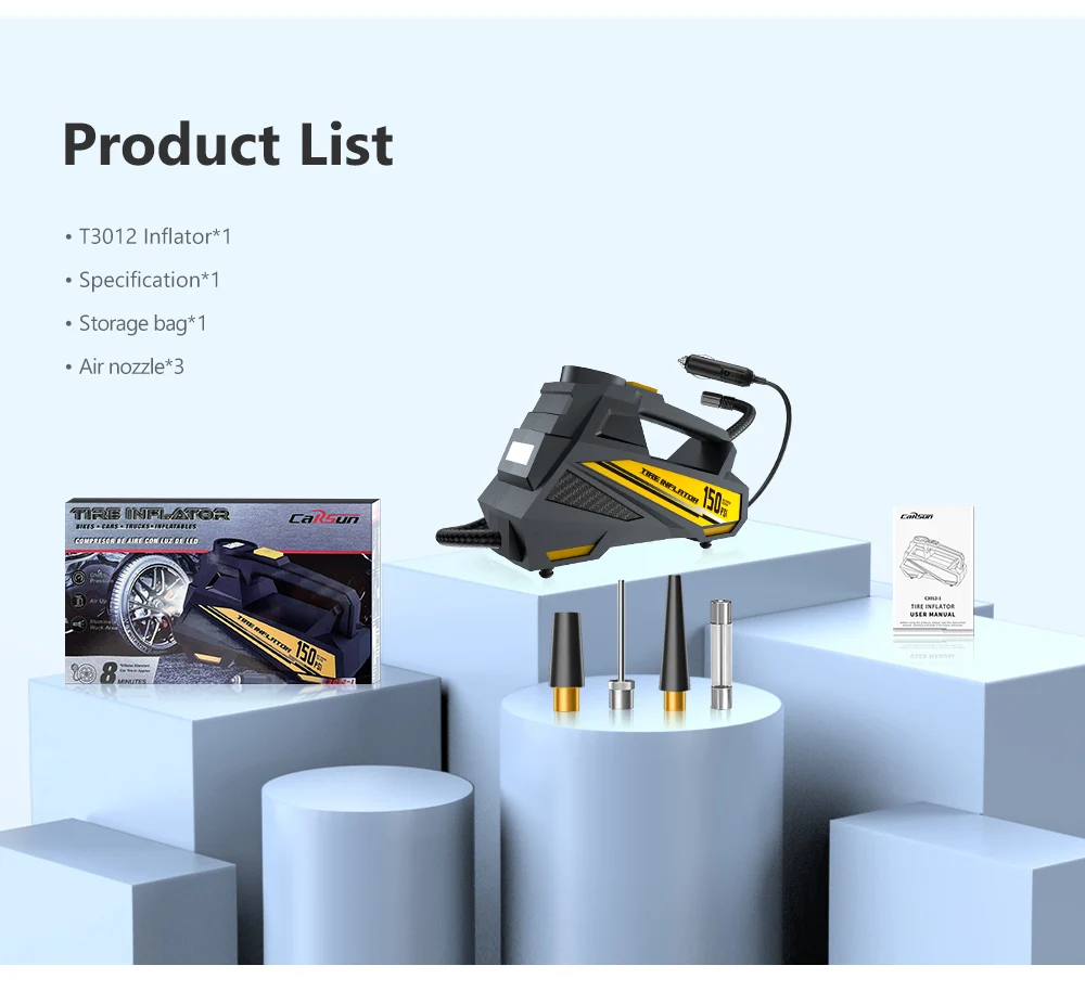 • Alta Pressão:O compressor de ar para carro pode inflar pneus de até 150 PSI, garantindo que os pneus do seu veículo estejam devidamente inflados para um desempenho ideal.