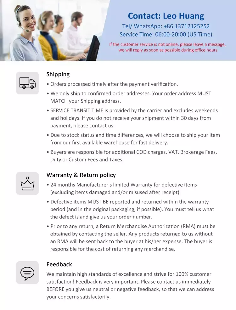 Welcome to contact us, we will help you solve your questions, and strive to do better.