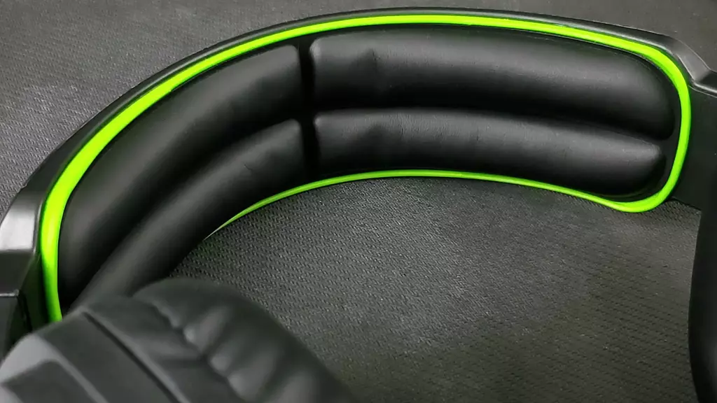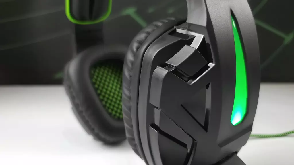 - Lateral do headset em plástico fosco preto com detalhe em led verde(não permite troca de cor, caso não deseje o led aceso apenas desligue o cabo USB)